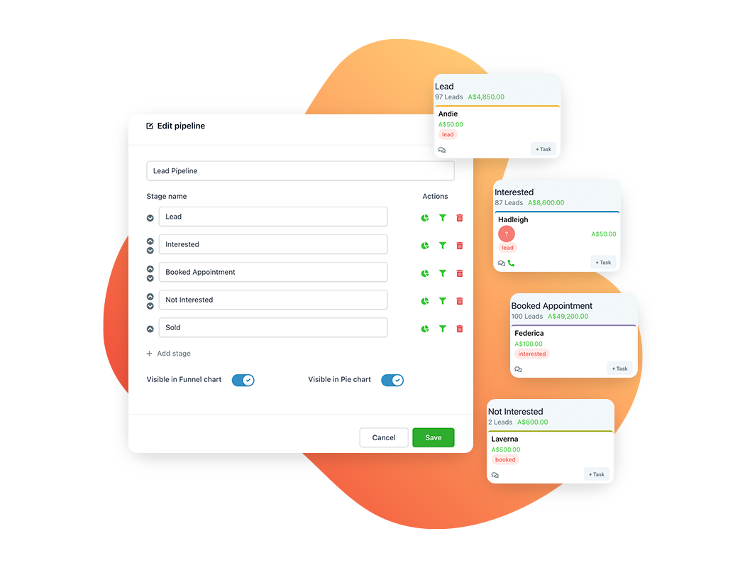 Automatically fill your pipeline, create deals and predict future revenue. Use custom fields to include the details that matter to your business and trigger automations as deals progress through stages.